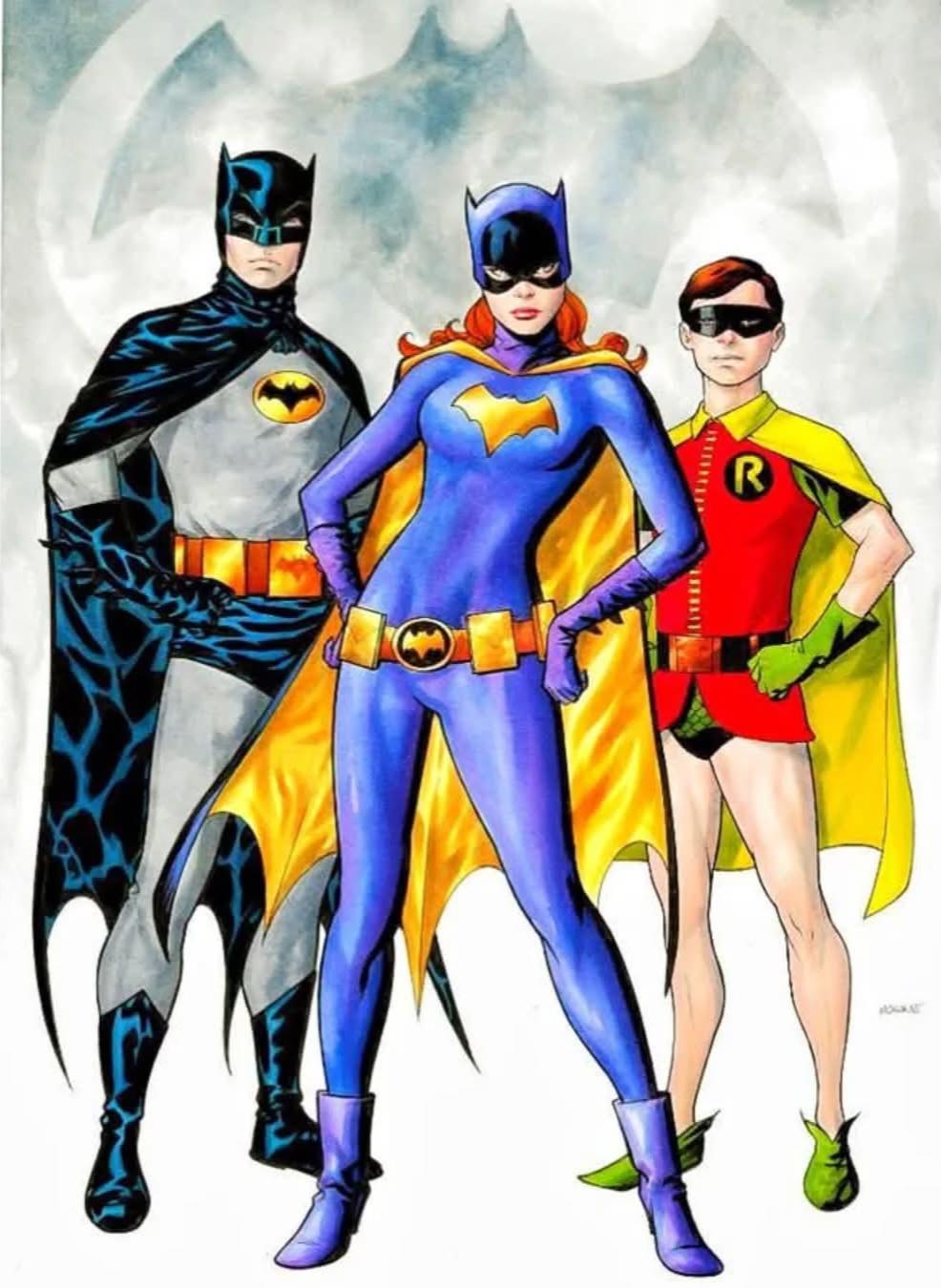 It wasn’t until the 1960s that Batman started to look more like the man the world knows today. In the 60s, the yellow oval symbol with the black bat in the Centre was added to his chest. Now the 1960s couldn’t be talked about without mentioning one of the most endearing portrayals of the Dark Knight on television, the campy and comedic TV series, Batman ( 1966 to 1969 ). Adam West starred as the titular character and his alter ego Bruce Wayne, and brought a fun and quirky take on them both. The show would open with an incredibly iconic and unforgettable theme song and would dive right into whatever crazy antics Batman and Robin ( Played brilliantly by Burt Ward ) would get up to that week. Whether they were taking on the Joker ( Cesar Romero ), The Riddler ( Frank Gorshin ), The Penguin ( Burgess Meredith ) or Catwoman ( Julie Newmar ) 1966 to 67, ( Eartha Kitt ) 1967 to 68 the dynamic duo were keeping audiences entertained and on the edge of their seats.