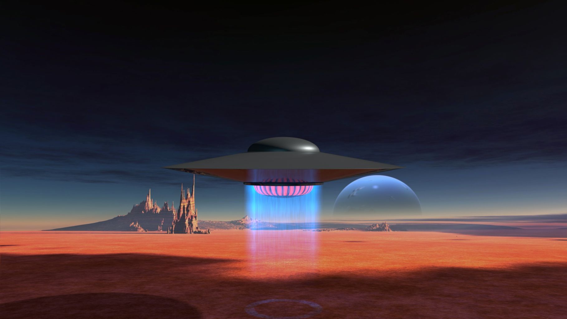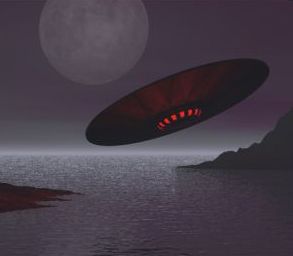 very shallow cylinder of about the same diameter, and a somewhat smaller dome that ostensibly houses the starship's faster-than-light drive engine and central gyroscopic landing pedestal. The precise contours and proportions differ slightly between the saucer's shooting miniatures, full-size sets, and matte paintings used in the film. On landing, the saucer's gangway and two conveyor-loading ramps swing down at an angle from the underside hull, near the edge of the lower lens shape.