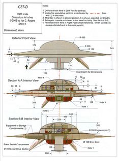 in diameter, and costing an estimated total of $20,000. The largest miniature, constructed of wood, steel, and fiberglass, which contained the internal motors for the gangway, conveyor ramps, central landing pedestal, and glowing red-neon light engine,
