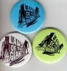 Three pins / buttons featuring the TV series logo "Land of the Giants" that aired on ABC television from 1968-1970. They measure approx. 2 and quarter inches x 2 and quarter inches and are round in three different colors, white, green and blue. The TV series starred Gary Conway, Don Matheson, Stefan Arngrim, Don Marshall, Deanna Lund, Heather Young and Kurt Kasznar.