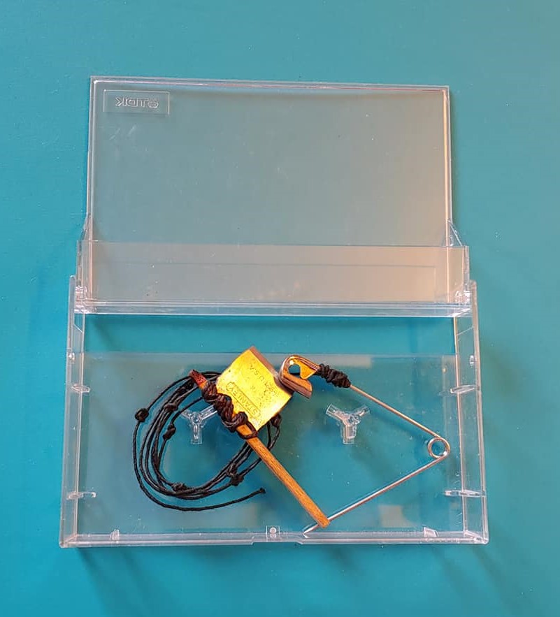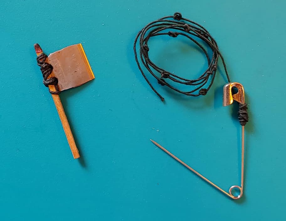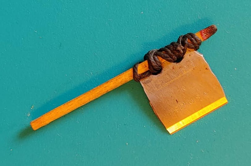 A fan made miniature baby pin rope climbing device, and a hatchet weapon that was seen throughout the show! Comes with a plastic case! The two mini props measures about 4 inches?Value: $25.