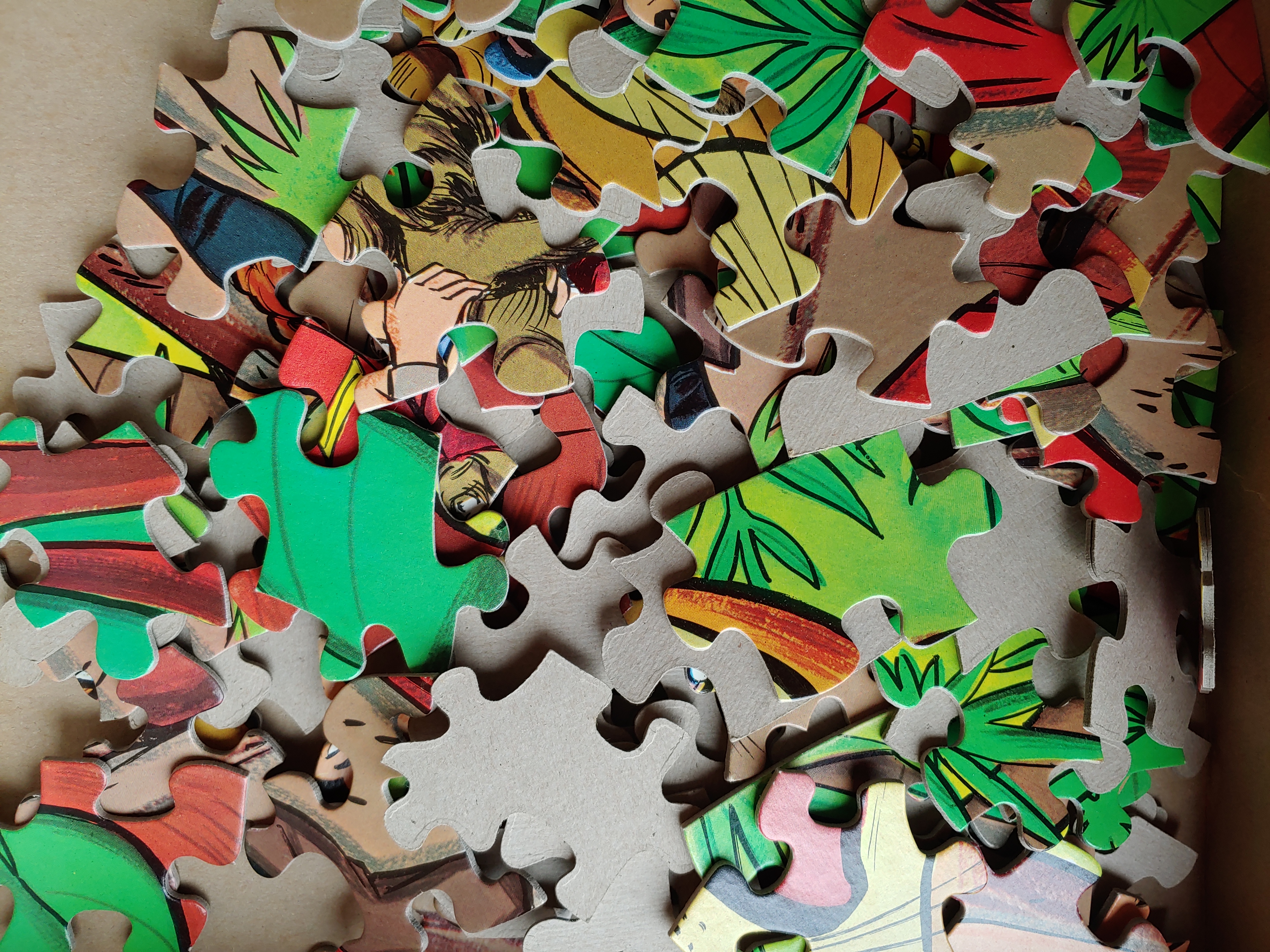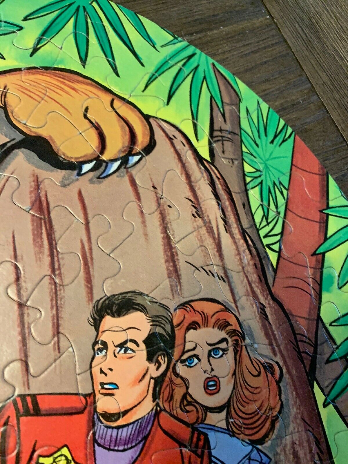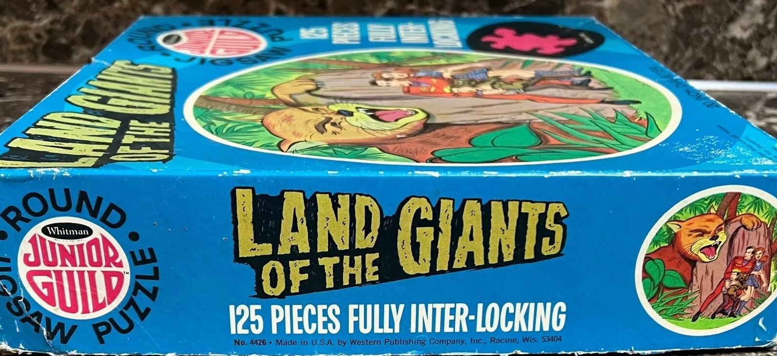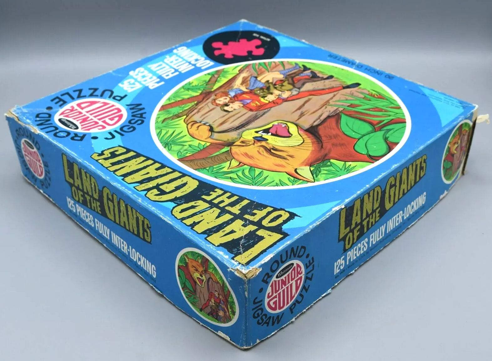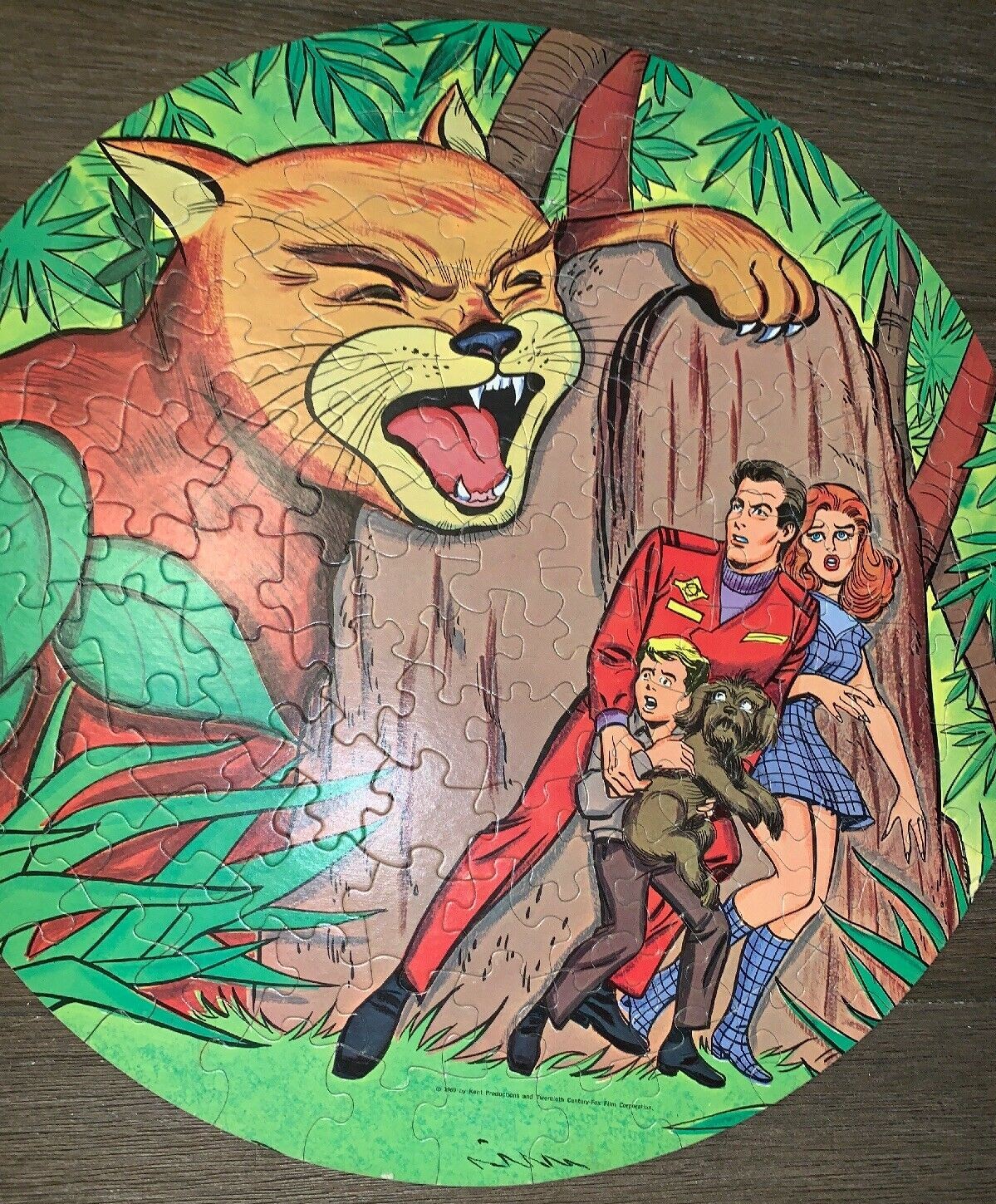 Issued by Whitman Junior Guild in 1968. A 125 piece puzzle forming a 20" round puzzle of a painting of three characters being chased by a giant cat.Value: $50.