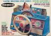 Fine overall. Control panel is designed with moving steering wheel, corresponding moving speedometer, "Electric Directional Space Signals, Working Countdown & Blast Off Indicator, Working Space Horn, Space License, On-Off Ignition Switch With Key" and glove compartment with "Galaxy Map." Control panel also features turning windshield wiper knob, cigarette lighter, fuel gauge and some sort of monitor. Top of control panel fits die-cut cardboard header display with "Land of the Giants" show logo and images of various gauges and dials. Only battery-operated feature is lights; one is missing bulb and we could not get the other bulb to light. Set is only missing the red plastic keychain that, unlike the Green Hornet key ( Which was in the green plastic and unique to that toy ), this set's key was identical red plastic as seen in Firebird set and is easily replaceable. Set is o/w complete, including plastic clips for cardboard attachment, which shows moderate wear with heavy 2-3/8" crease at left that breaks surface paper. VG / Fine. Unique piece to this set is the star chart "Galaxy Map," which has some handling wear with creases and inking / marker. Fine. Plastic over speedometer has 1.25" crack and cardboard backing of control panel has 5.75" vertical crease with slight surface paper break. Thin plastic horn has been pushed in. Control panel sticker label has some creasing, but overall control panel is VF. Not only considered the Holy Grail of "Land of the Giants" merchandise but one of the rarest and most sought after of all 1960s character toys.