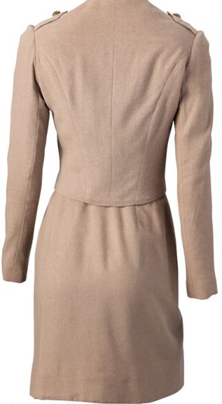 Fox labels. The jacket exhibits a small tear at the lower right edge and the skirt with some slight surface fabric loss at the rear waistband closure, and some faint stains, but remains in fine condition overall.