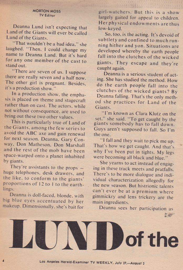 LAND OF THE GIANTS HERALD-EXAMINER TV WEEKLY GUIDE |