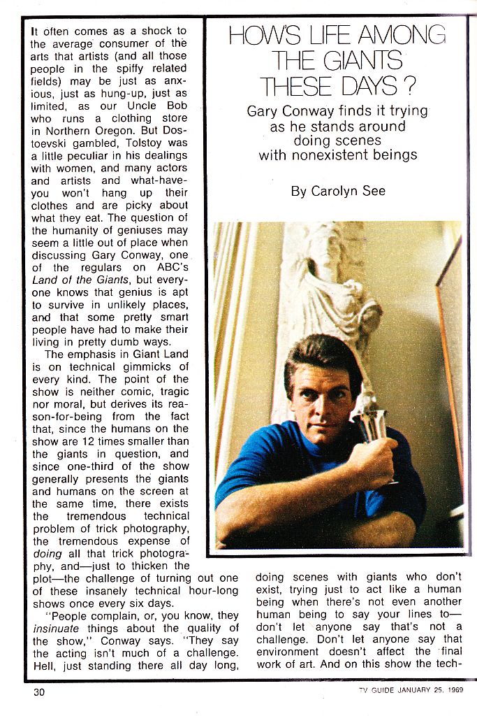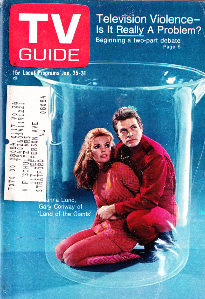 A 1967 TV Guide, with Deanna Lund and Gary Conway on the cover. This was a popular press photo used for the Land of the Giants TV series.Value: $75.