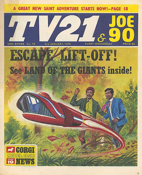Very scare 20 pages Comic weekly. Articles includes a forward from the Back Streets, Meet the Saint, Joe 90,. Thunderbirds, Clarks Commandos, and a page on West Ham Martin Peters. Really cool cover of the Giants after the Spindrift.Value: $150.