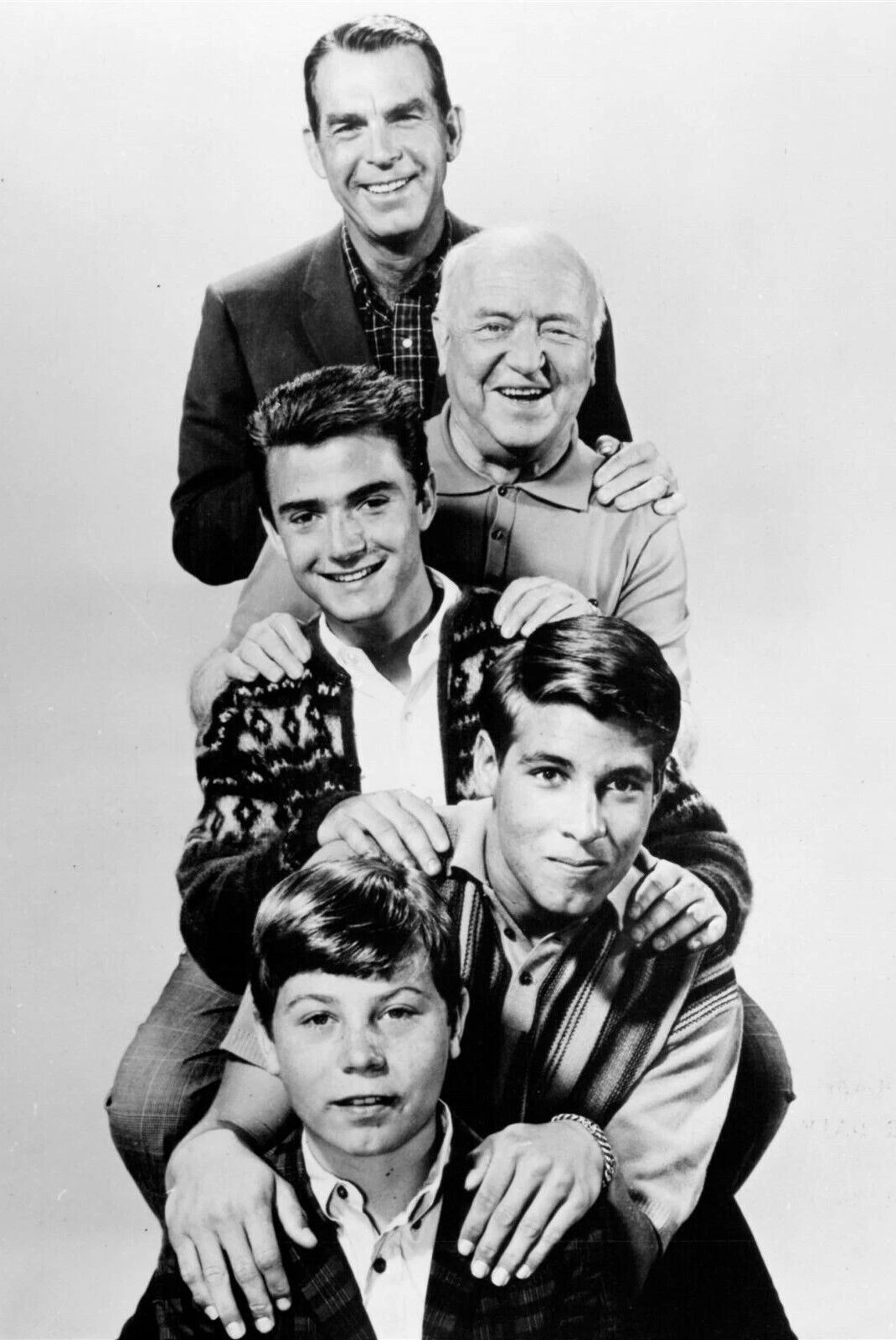 Clockwise from left: William Frawley, Tim Considine, Fred MacMurray, Don Grady, and Stanley Livingston on My Three Sons ( 1962 )