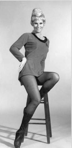 On September 1, 1966, one week before the first episode screened on NBC, Whitney, Shatner, and Nimoy were interviewed by Barbara Walters on The Today Show where they discussed the new show. The first promotional photographs for Star Trek also featured Shatner, Nimoy, and Whitney separately and together with pre-production costumes for all, and an early version of the "beehive" hairstyle