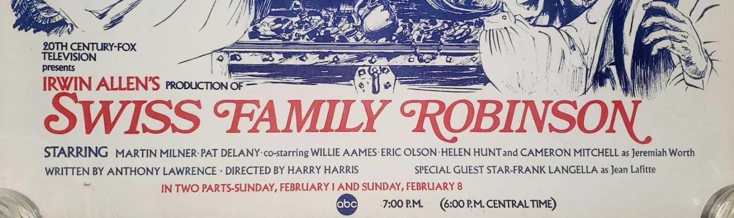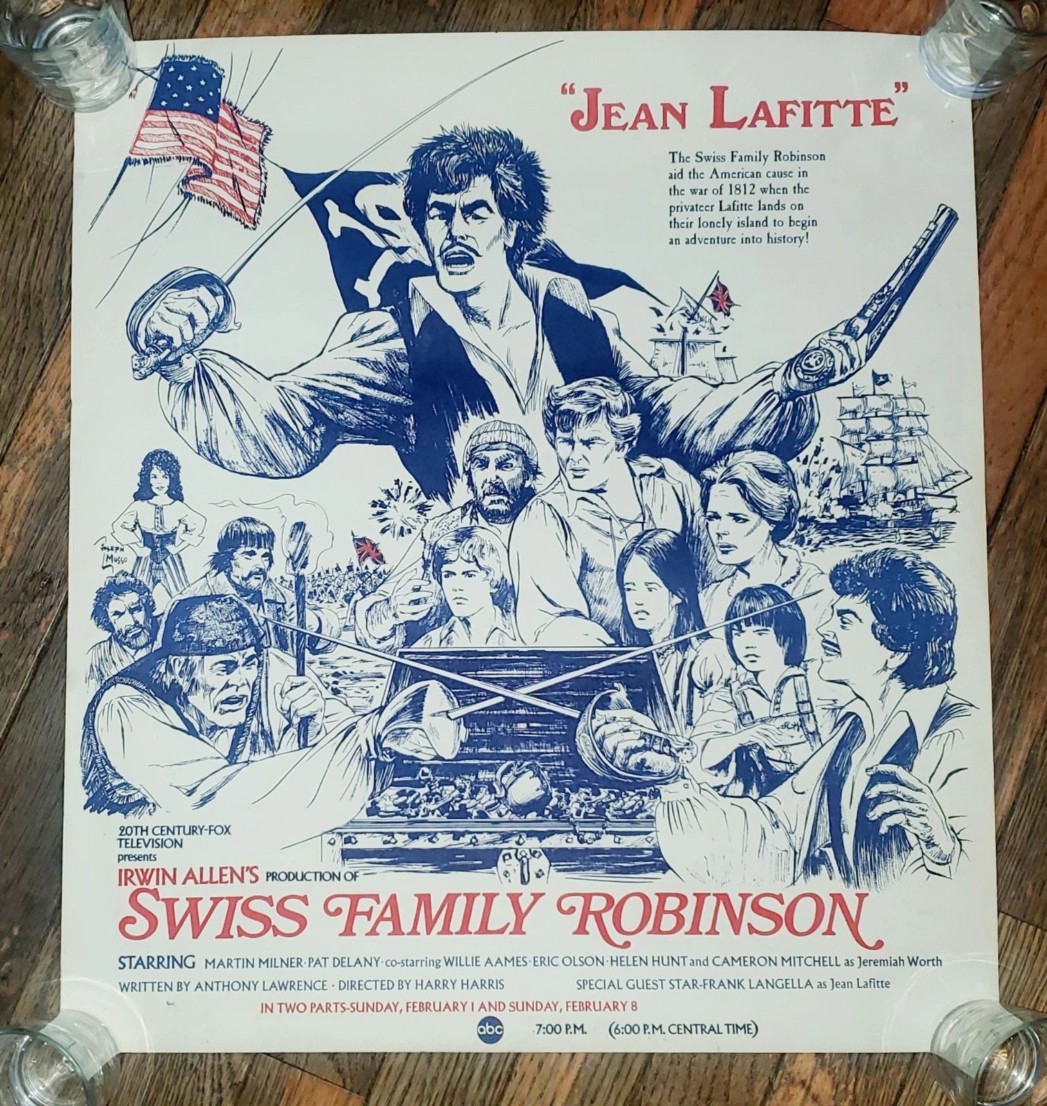 The 1975 "Swiss Family Robinson" Irwin Allen rare ABC TV Promotional Poster is a vintage collectible featuring iconic characters from the popular TV series like Helen Hunt and Martin Milner. Measures 17 x 19 Inches. comes in great condition overall bright and clean overall no pinholes. Used at television studios for promion only These were not available for sale to the public. This promotional poster captures the essence of the show with its nostalgic design and imagery, making it a valuable piece for fans and collectors alike. With its rarity and association with the beloved TV series, this poster is a unique and sought after item for vintage toy and memorabilia enthusiasts.