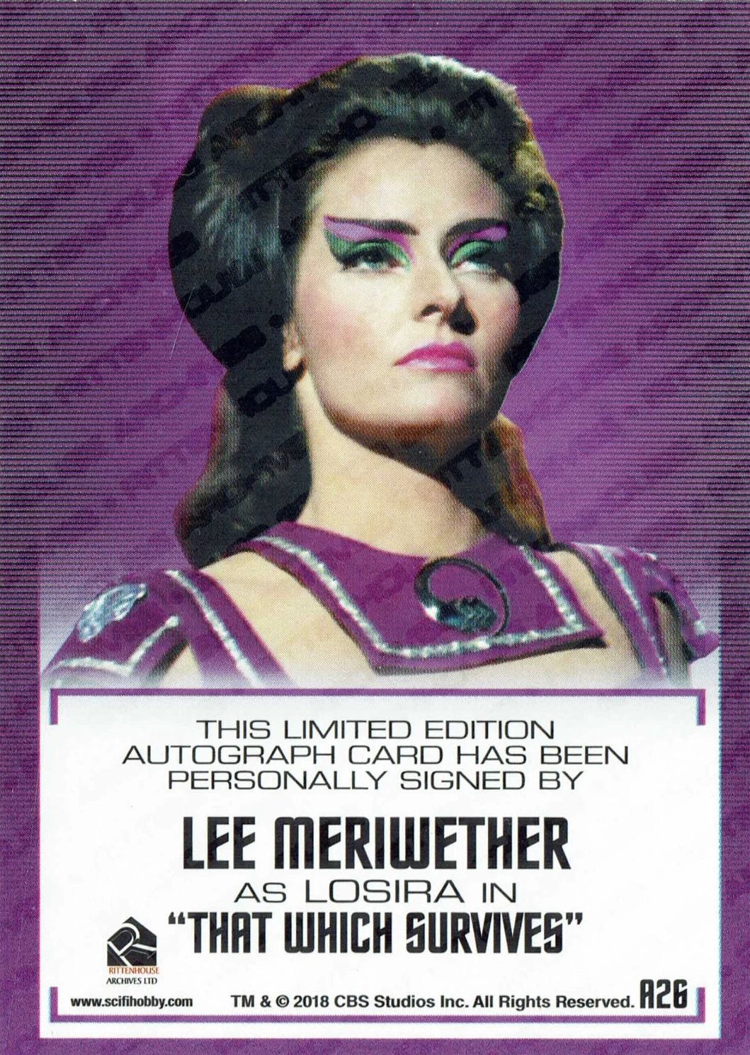 A series of different trading cards signed by actress, "Lee Meriwether" from The Time Tunnel, Star Trek, and Batman TV series.Value: $40. ( Each )