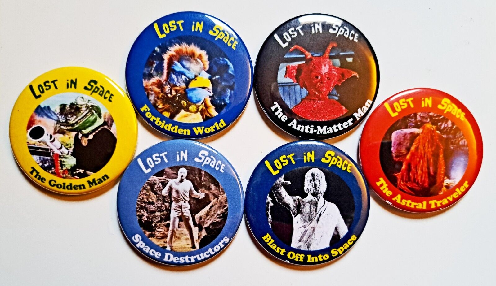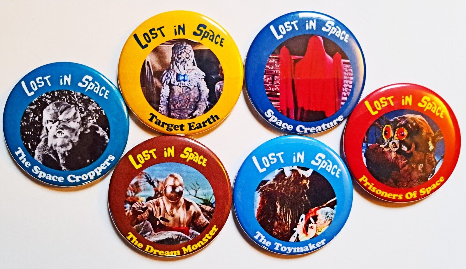 What wasn't made in the 1960's is being made today by great fans. A series of hand made pins from the classic TV series, Lost in Space. Many different versions of our loved characters are featured & ready to wear. I framed these and are a great conversation piece. I purchase these and many others on July 8, 1998 from Dean Trudeau of Glendale, Arizona. "Many thanks Dean for all my special request, and one-of-a-kind buttons!" For those interested on purchasing any special buttons you can contact Dean by his e-mail at