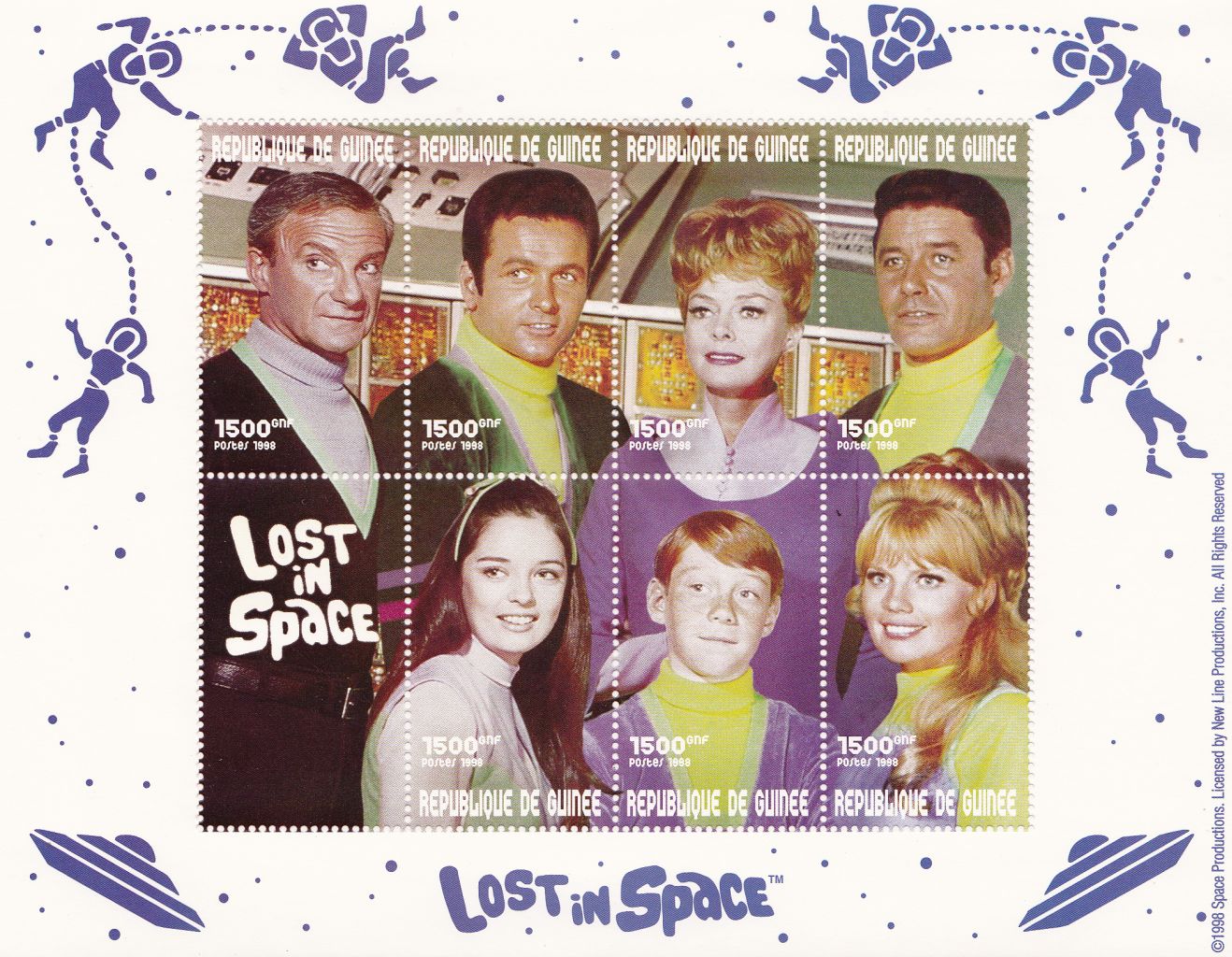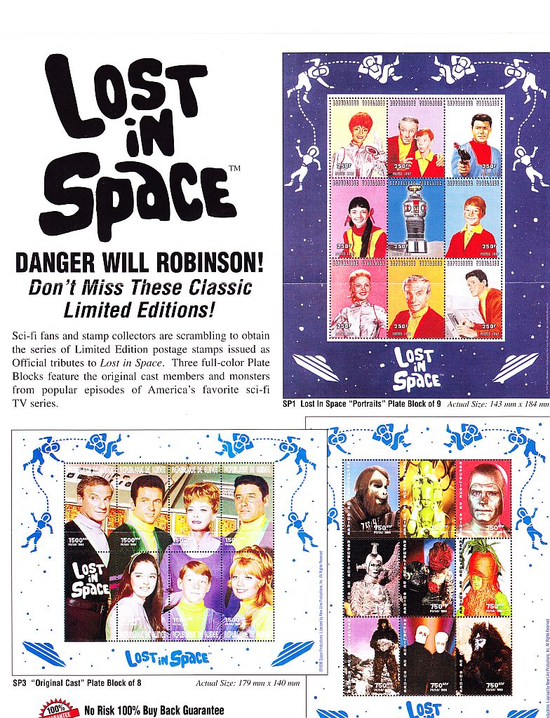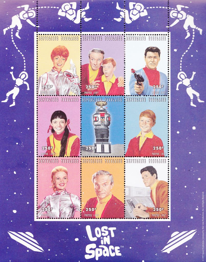 Issued by the African country "Togo" in 1998. For the 1st time ever 9 official postage stamps honoring the original LIS cast from the 1965 TV series. These were very limited, and will be a true collectors item in the years ahead.Value: $60. ( Set )