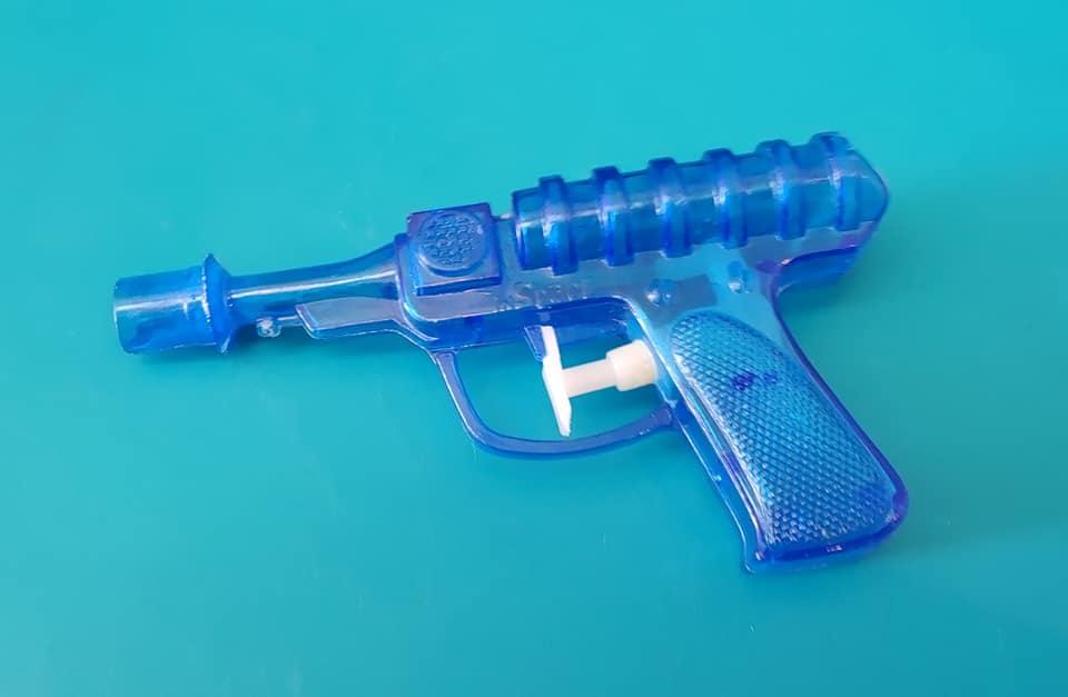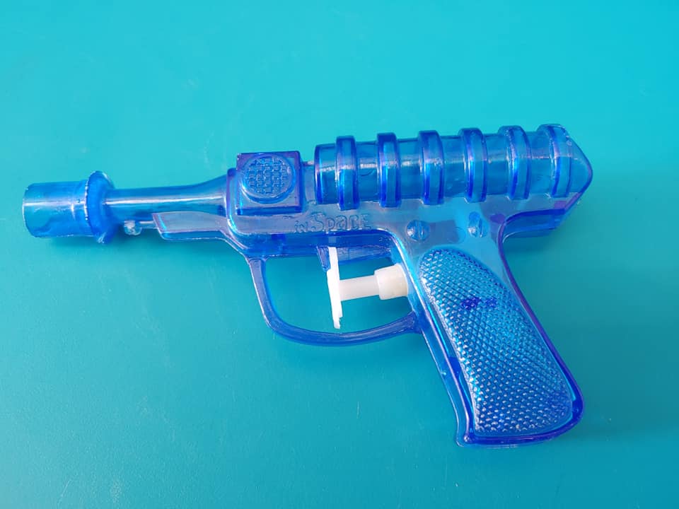 Issued in 1977 and was marketed without copy right permission. The company reissued the item filing OFF the word "LOST" on the gun. There were four ( 4 ) different colors issued on this toy. Colors being, red, blue, green, and yellow.Value: $200. ( Each )
