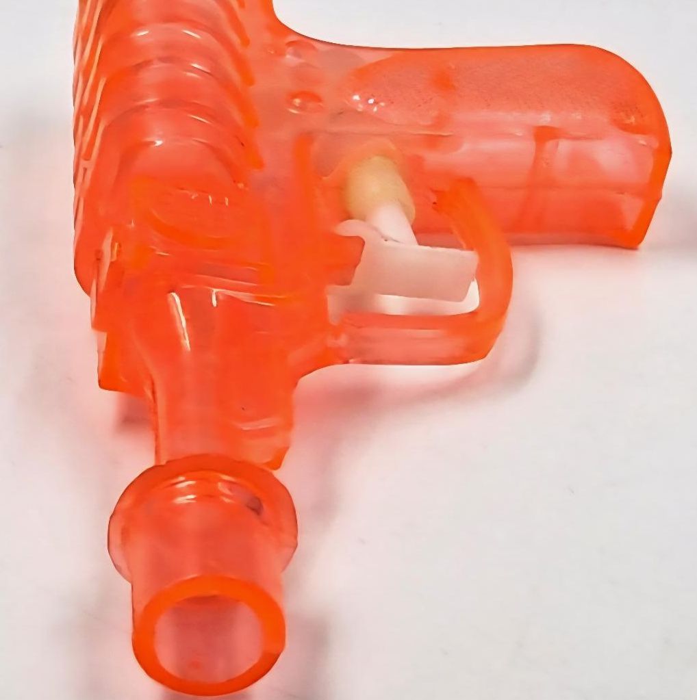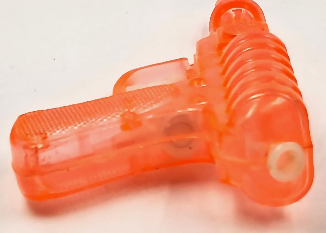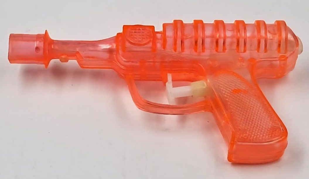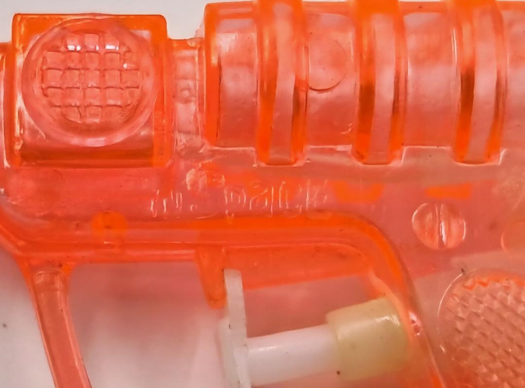 Issued in 1977 and was marketed without copy right permission. The company reissued the item filing OFF the word "LOST" on the gun. There were four ( 4 ) different colors issued on this toy. Colors being, red, blue, green, and yellow.Value: $200. ( Each )