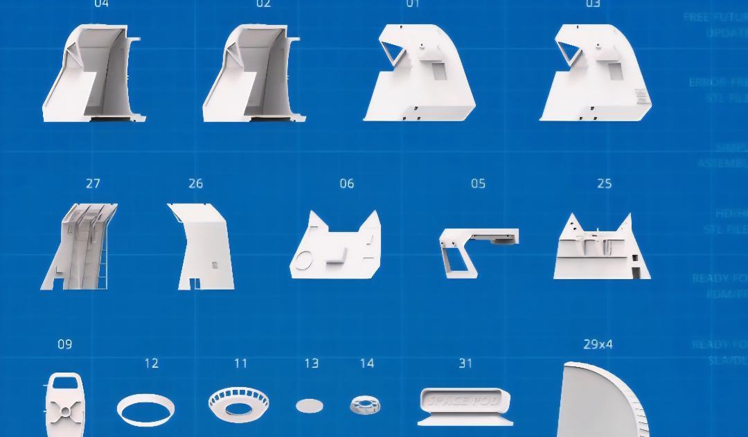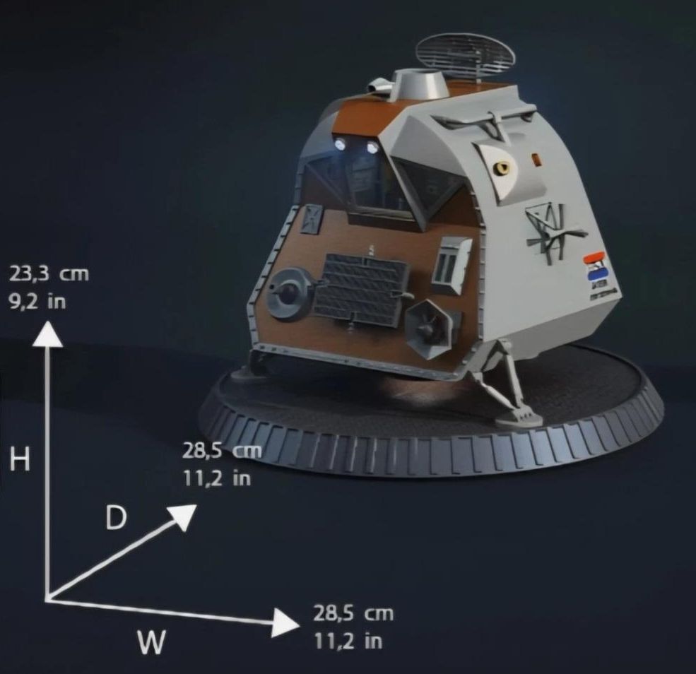 Custom 3D printed model kit in 1/16 scale Space pod from Lost in Space. This is large scale model at 11" x 11" x 9". It includes a full interior with detail for all controls. The kit was designed to easily accommodate lighting the entire ship. This is a highly detailed model kit. I provide opaque parts for the windows and glass but, most choose to use sheet styrene for a completely clear windows.