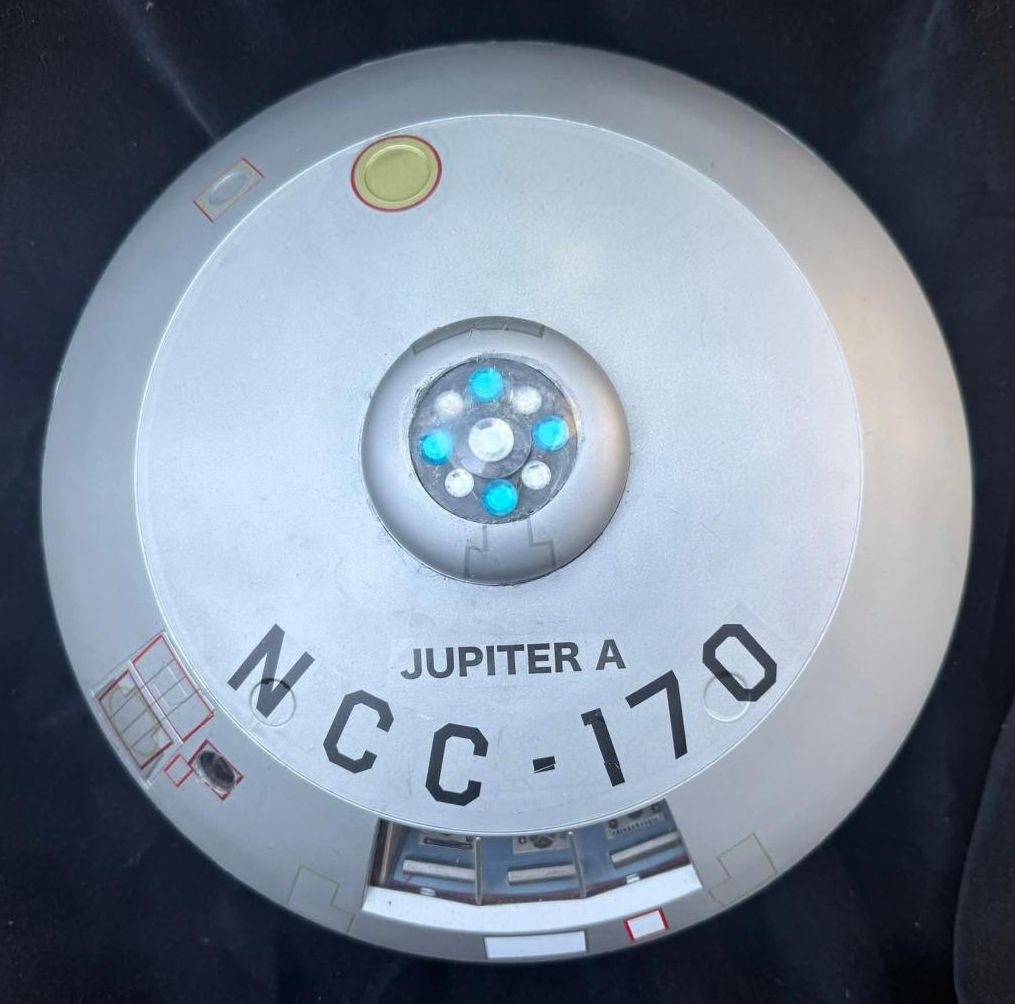 Here is an as is Polar Lights Lost in shelf space partly built Jupiter-2 ( Missing the upper dome and lower engine ) so I choose to make it into the Jupiter-A. Maybe from the era of the NX Enterprise? It’s also a tribute to the spinning light drive ships were the offspring of Forbidden Planets C-57 D saucer. A little influence from it's roots. Used what was laying around. Not to offend fans of any of those projects individually, but just for fun, and to see what might happen??