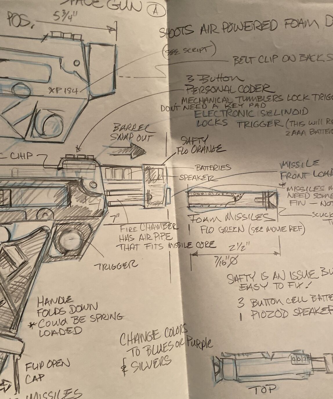 LOST IN SPACE MOVIE ORIGINAL PROTOTYPE SPACE BLASTER DRAWING