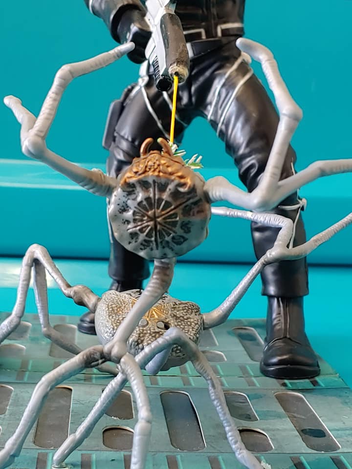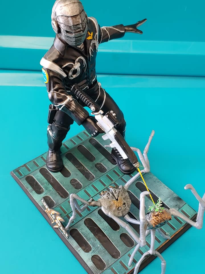 This Applause doll of Matt LeBlanc was a special collectible item through special dealers and comic book stores. We modified this action figure into a model diorama, adding a base and alien spider to the display. The spider is in mid air, being shot at by Major. Don West laser blaster.