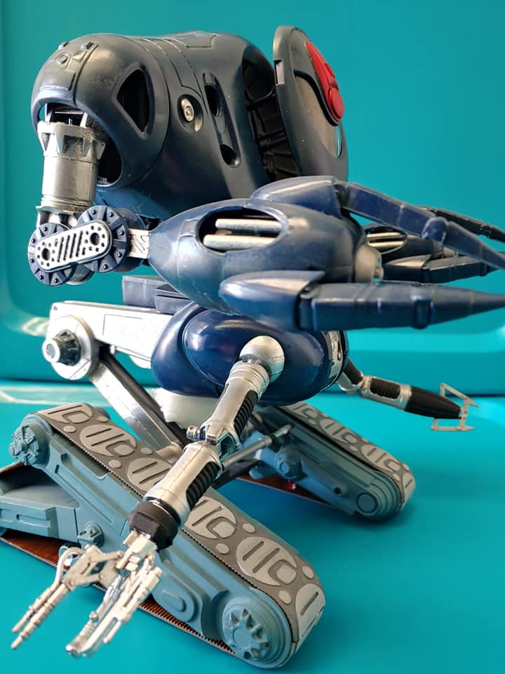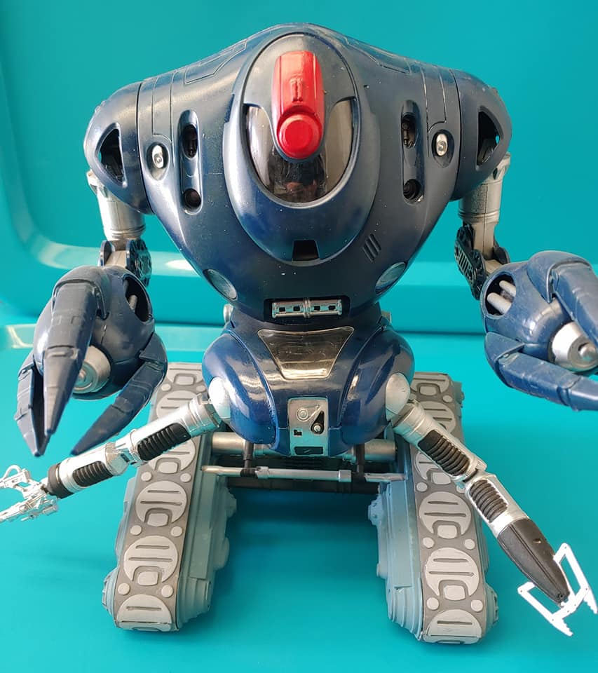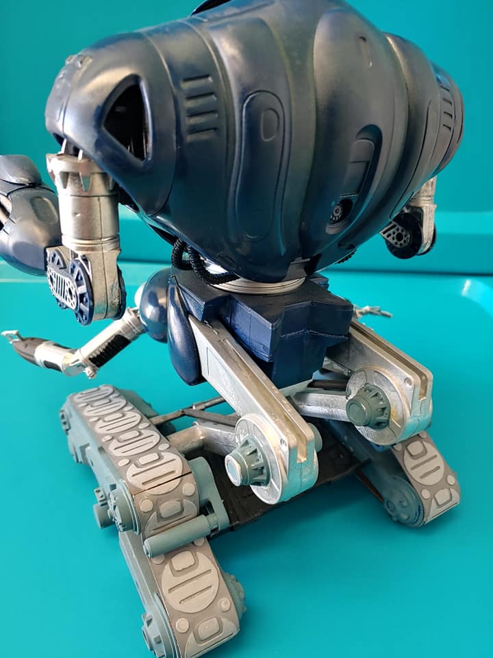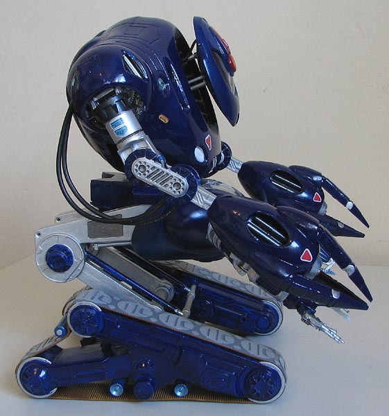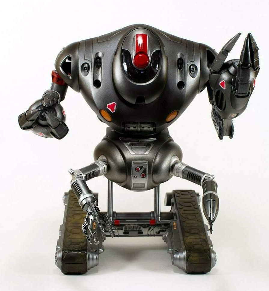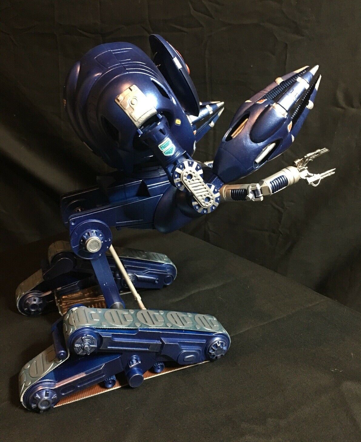 Attacked by giant metal eating spiders, the environmental robot protects the crew of the Jupiter-2 in the brilliant 1998 Movie remake. This model has been customized with battle damage from the spider attack, the inner workings and mechanisms of the robot are now visible thought the damage! It stand roughly 12 inches tall, too! It's a one of a kind custom conversion!