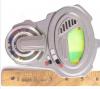 This lot consists of a futuristic plastic computer drive that features an exposed disc reader and a green display. Inside the drive is a green and black electronics board and on the back, two white plastic connectors. This lot exhibits scratches and chipping in the plastic, a cracked screen, a scratched disc, and missing power supply. Dimensions: 6" x 5" x 3" ( 15.25 cm x 12/75 cm x 7.75 cm )