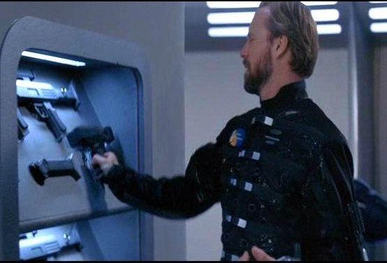 From the 1998 sci-fi blockbuster starring Matt LeBlanc, William Hurt and Gary Oldman. This is one of the laser rifles made for the film. This particular rifle was only seen on display in a weapons case as William Hurt approaches the case to remove a pistol as