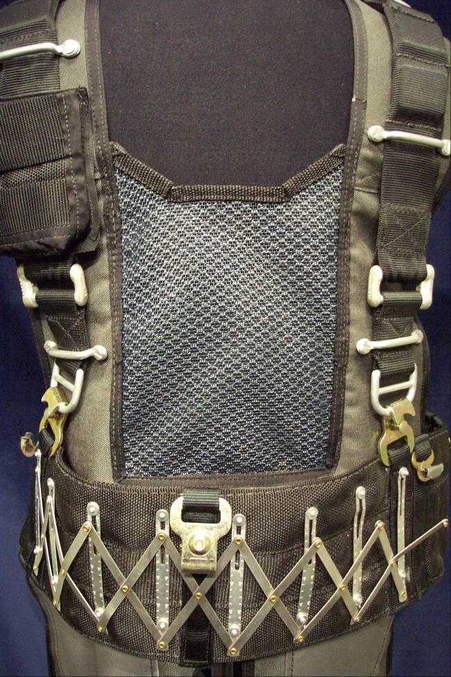 basically a harness with sturdy looking buckles and a wide belt with a moving metal concertina frame on the back. There is some webbing