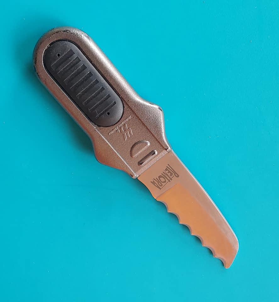 Here is an original prop knife made for the 1998 Lost in Space film. It is from John Robinson's ( William Hurt ) EVA suit. It snaps into a shoulder holster. I believe it can be best seen when he is sitting at the Proteus's control panel down-loading the computer information. The knife is made of metal & plastic and is about 5 inches long.