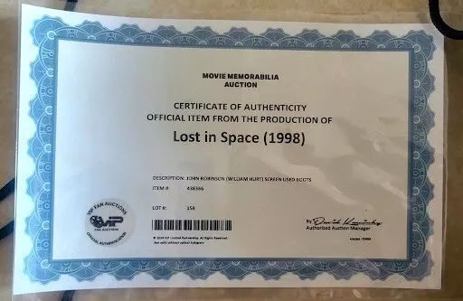 Lost in Space ( 1998 ): William Hurt / John Robinson Space Boots COA. This is a great pair of boots worn by John Robinson in the remake film. This includes a Certificate of Authenticity from VIP Fan Auctions. ( * ) This item was up for auction on eBay on February 27th 2025 and a starting bid of $400.