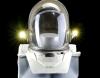 The backpack opens up with magnets to reveal power sources to a functioning fan for the helmet and lighting for the chest and helmet. The light up features include center front points and bars on the chest, side-helmet flashlights, and illumination bars inside the helmet at the neck and across the plexi dome. Additionally, the illuminated bar across the inside of the plexi can move up and down along the dome roughly two inches. The helmet is attached to the chest and back piece with a slide bar, which must be in place for the electronics to work. Included in this listing are an extra battery and charger.