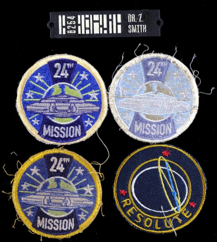 Dr. Smith uses the real Dr. Smith's identity to escape the Resolute during the alien attack, seen in a flashback during the "Impact" episode of season one ( S1, E1 ). Emblems are seen on various articles of clothing and suits throughout her adventures with the Robinson's in space and various planets in the "Lost in Space" ( 2018-2021 ) series.