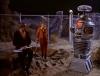 Although a machine endowed with superhuman strength and futuristic weaponry, he often displayed human characteristics, such as laughter, sadness, and mockery, as well as singing and playing the guitar. With his major role often being to protect the youngest member of the crew, the Robot's catchphrases were "That does not compute" and "Danger, Will Robinson!", accompanied by flailing his arms.