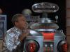 The Robot was performed by Bob May in a prop costume built by Bob Stewart. The voice was primarily dubbed by Dick Tufeld, who was also the series' narrator, and Jorge Arvizu for the Spanish dubbing. The Robot was designed by Robert Kinoshita, who also designed Forbidden Planet's Robby the Robot. Both robots appear together in Lost in Space episode #20, "War of the Robots", and in episode #60, "Condemned of Space". The Robot did not appear in the unaired pilot episode, but was added to the series once it had been greenlit.