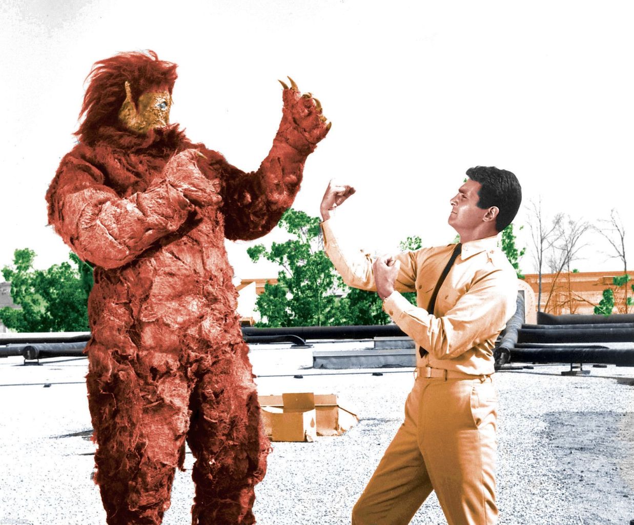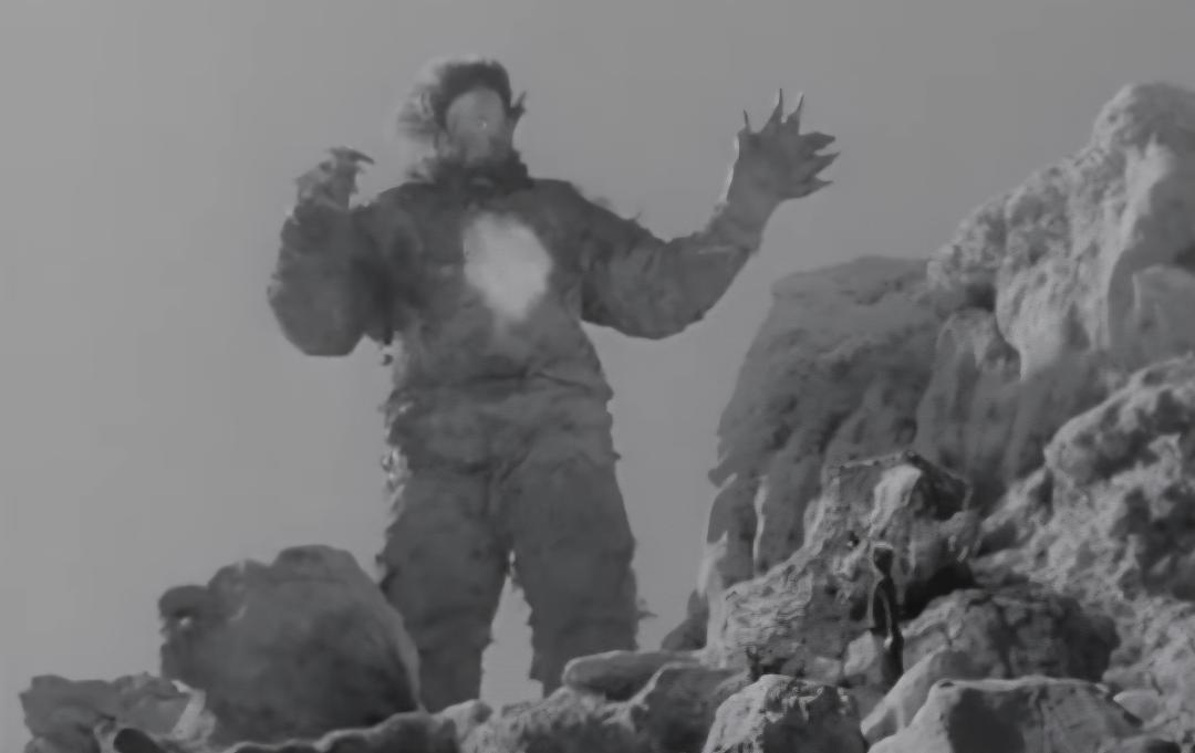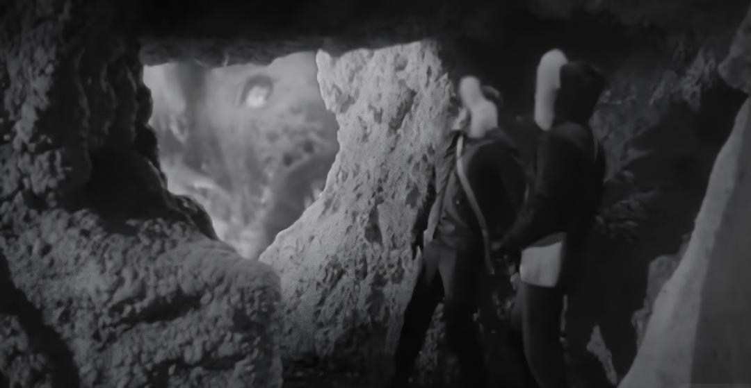 While John and Don are at the station, they are menaced by a gigantic cyclops and driven into a small cave to escape it. Will spies the creature with the Jupiter-2's radio telescope and races to the weather station, where he is able to kill the monster and save