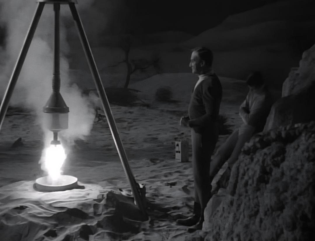As Doctor Smith walks across a sandy area, you can clearly see that the sections that make up the background don't match and you can see the seams in it.
