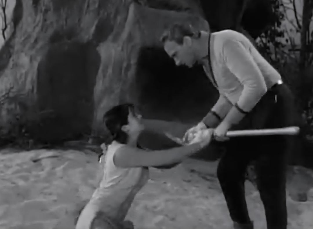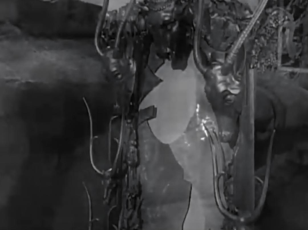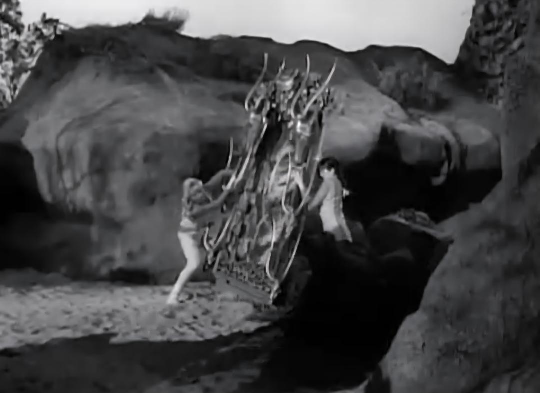 The black wire used to pull over the table outside the Jupiter-2 during the cosmic storm at the beginning of the show is visible before the table "falls" over from the wind.