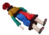 The doll is a stunt version, used for action sequences. Its body is made of foam, with the head, arms and legs all made of hand-painted foam rubber. The doll features a multicolored costume and woolen hair. It has some wear from production use, including scuffing and scratching to the paint. Dimensions: 70 cm x 23 cm x 11 cm ( 27" x 9" x 4" ).