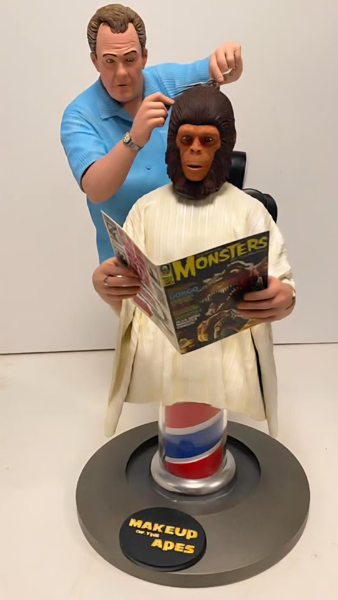 One of my latest build paints is on this kit that I picked up at Wonderfest. It Features "Apes" makeup artist John Chambers making up actor Lou Wagner as Lucius for 1968's Planet of the Apes. This kit is based upon a real behind the scenes gag photo. It was a blast to paint!