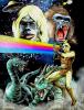 Science fiction art is a type of illustration that contains themes such as the future, otherworldly, and fanciful. It frequently features future cities, spacecraft, and technology, as well as extraterrestrial worlds and monsters.