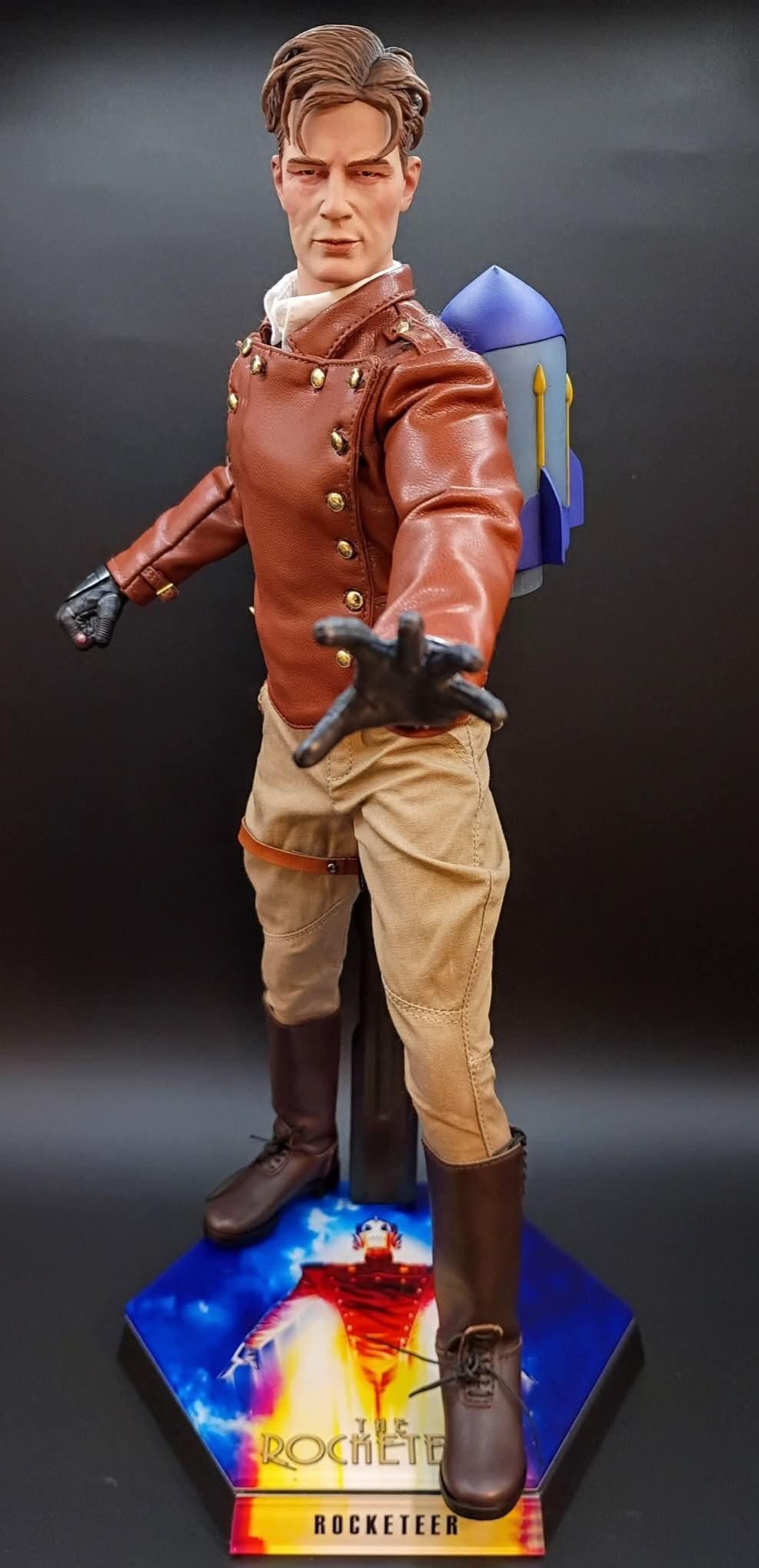 Keep an eye on the skies and watch for our newest Disney Q-Fig Elite, The Rocketeer by QMX. Based on the classic Disney action movie The Rocketeer, the Rocketeer Q-Fig Elite captures our mysterious hero just as he blasts off to save the day. Leaving a trail of flame and smoke behind as he roars into the air, The Rocketeer will defend America and her allies against the Nazi threat with grit and you guessed it a rocket pack. Clad in his signature helmet and leather flight jacket, we've spared no details in recreating the iconic look of this mid-century hero. The Rocketeer Q-Fig Elite stands 5 inches tall from the fiery diorama display base to the top of the American flag billowing behind our hero.