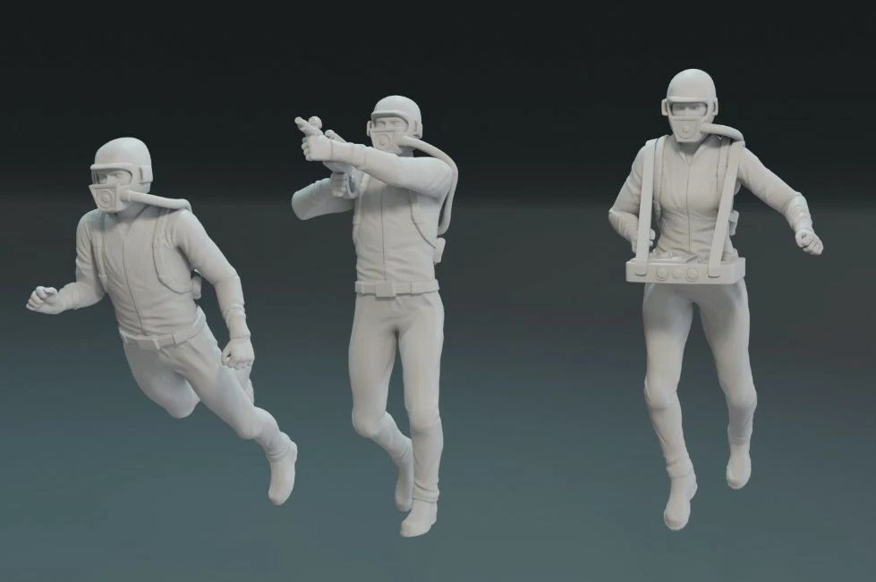 From the 1966 movie "Fantastic Voyage" - the Proteus submarine crew swimming. 3D printed in white versatile plastic and are 2.18 - 2.22 inches tall. Change!! The Cora figure will have the gun control system as shown. The Cora swimming figure is currently not available.