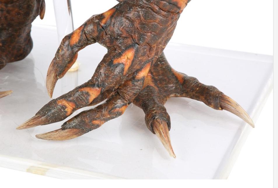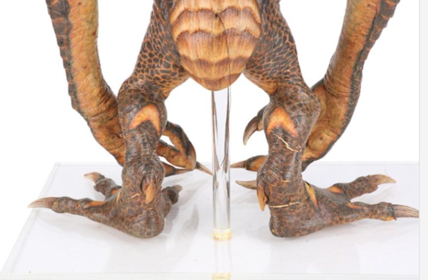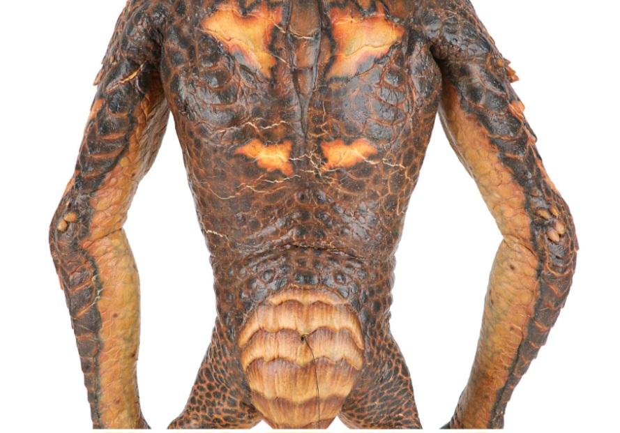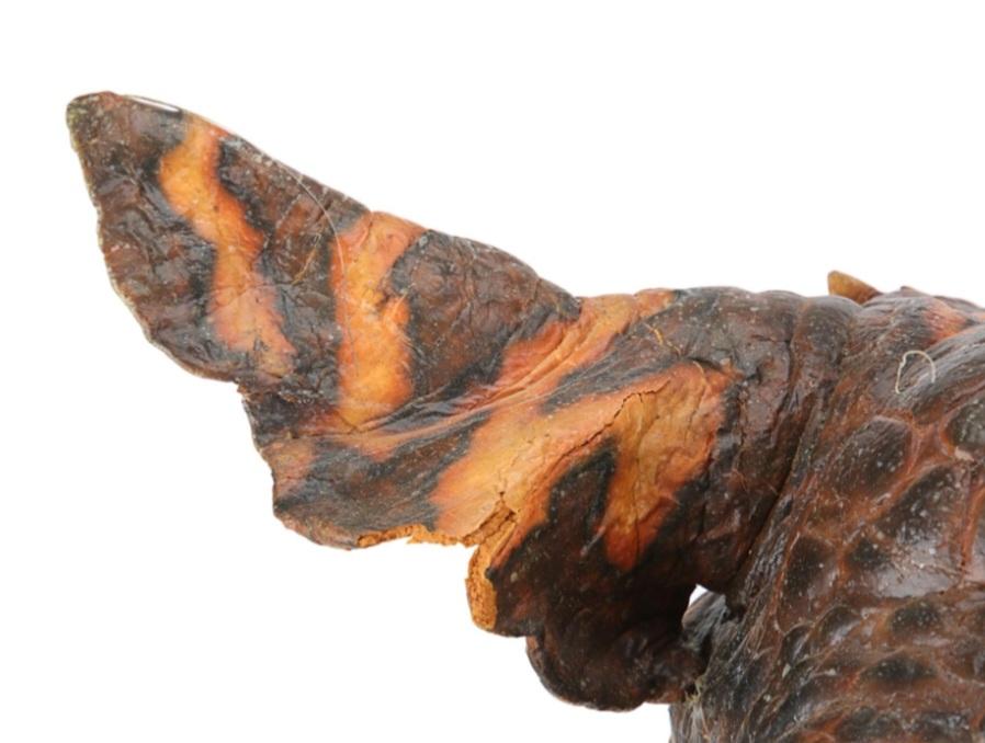This gremlin's head is made of foam latex, while its body is made of latex and polyfoam, with a metal skeleton. It is painted predominantly brown and orange, with red resin eyes. Lengths of fishing wire and string protrude from several parts of the body, allowing it to be puppeteer. The gremlin has some wear from production use and age, most notably cracking to the fragile latex skin in places, while the tip of its right ear has come away. The gremlin is displayed on a custom-made, clear acrylic stand. Dimensions ( Displayed ): 42 cm x 46 cm x 67 cm ( 16" x 18" x 26" ).