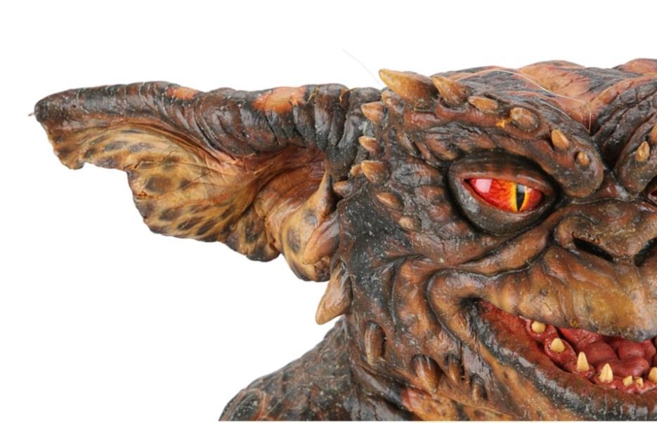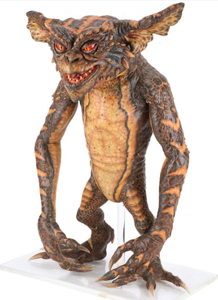 A gremlin puppet from Joe Dante's comedy-horror sequel Gremlins 2: The New Batch. After taking over the Clamp Center in New York, a horde of vile gremlins wreaked havoc on those still trapped in the high-tech, high-rise building. This full-body puppet was created by Academy Award-winning special makeup effects artist Rick Baker and his team.