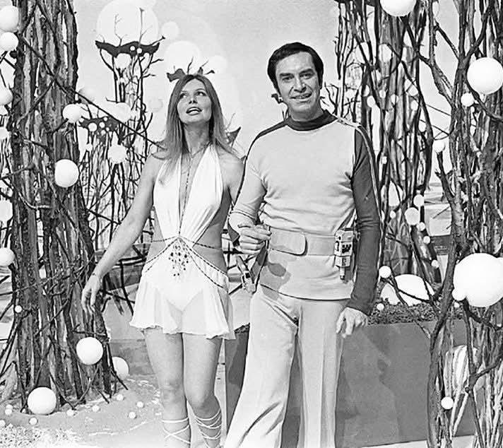 The headline stars of Space: 1999 were American actors Martin Landau and Barbara Bain, who were married to each other at the time and had previously appeared together in Mission: Impossible. To appeal to the American television market and sell the series to one of the major U.S. networks, Landau and Bain were cast at the insistence of Lew Grade over the objections of Sylvia Anderson, who wanted British actors. Also appearing as regular cast members were the Canadian-based British actor Barry Morse ( As Professor Victor Bergman in the first series ) and Hungarian-born, US-raised Catherine Schell ( As the alien Maya in the second series ). Before moving into the role of Maya during the second series, Catherine Schell had guest-starred as a different character in the Year One episode "Guardian of Piri". The programme also brought Australian actor Nick Tate to public attention. Roy Dotrice appeared in the first episode as Commissioner Simmonds and at the end of the episode it appeared that he would be a regular character; by the second ( Transmitted ) episode the character vanished, reappearing partway through the first series in the episode "Earthbound", his only other appearance on the show, in which it is implied that he dies from asphyxia inside an alien spacecraft.