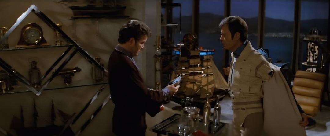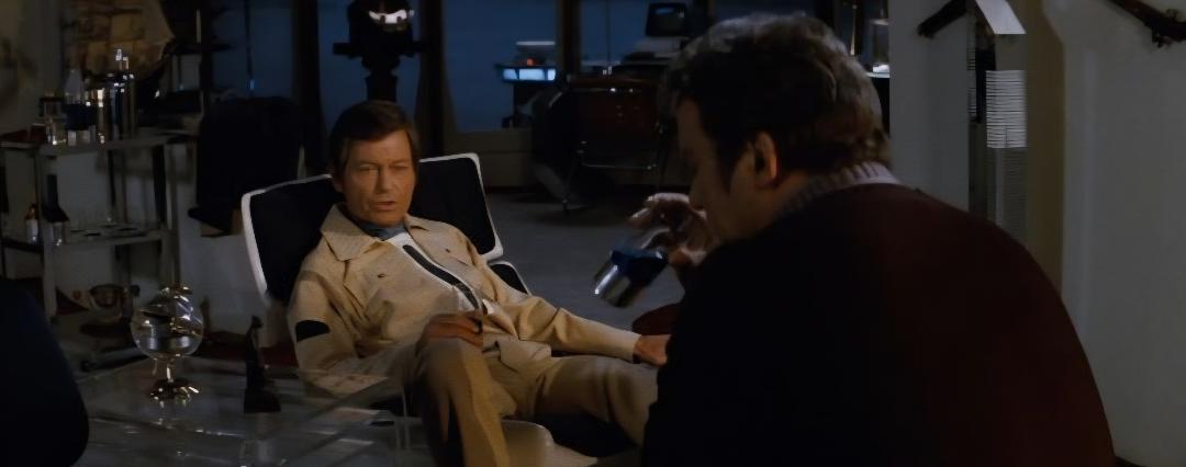 Doctor McCoy's ( DeForest Kelley ) off-duty costume from Nicholas Meyer's sci-fi sequel Star Trek II: The Wrath of Khan. McCoy wore his outfit when he visited Captain Kirk's ( William Shatner ) quarters for a drink to celebrate his birthday. McCoy also dressed in a similar shirt and trousers in Star Trek III: The Search for Spock and Star Trek IV: The Voyage Home.