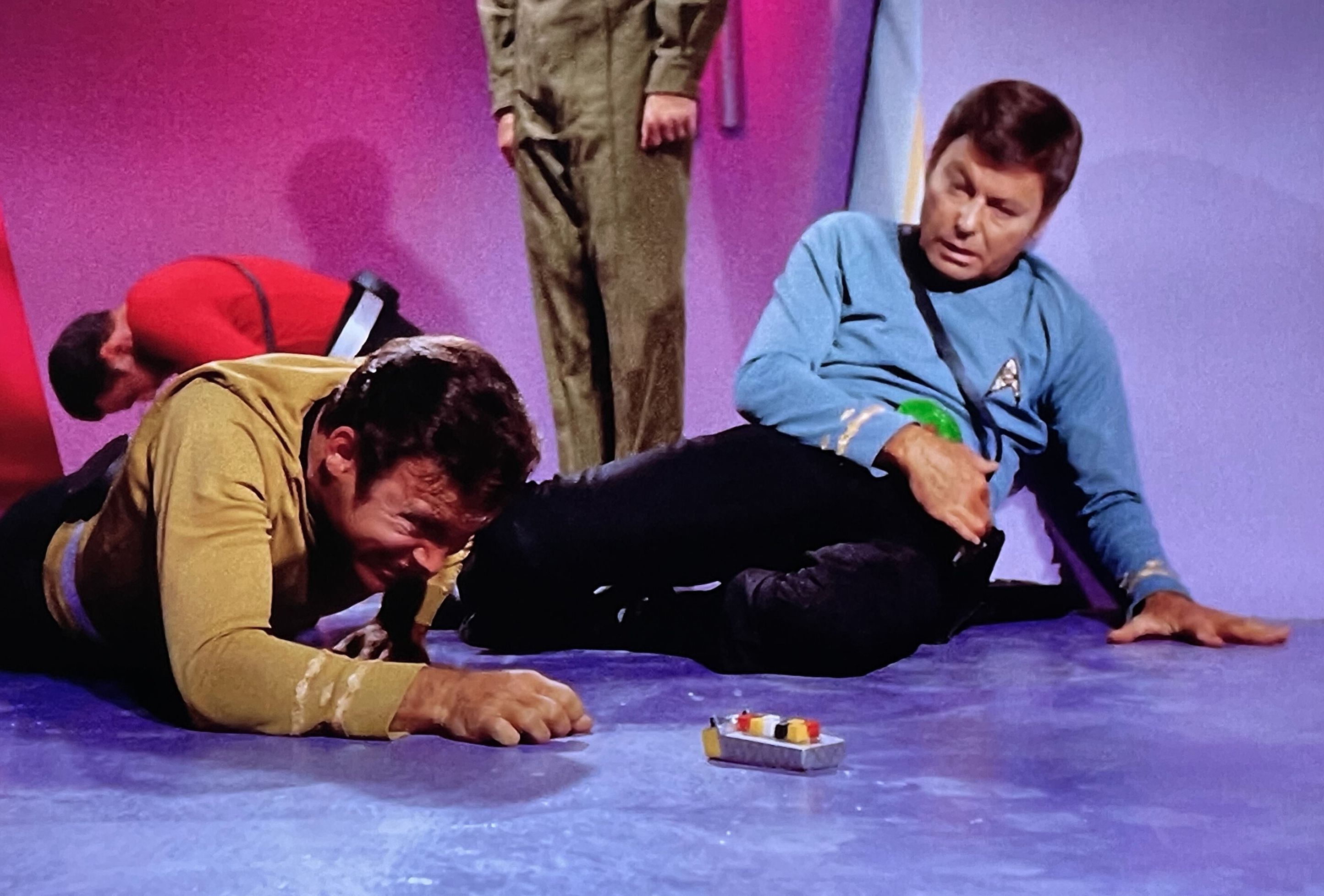 with metallic gold diamond striping. Highly visible and an essential element used by Doctor McCoy ( Kelly ) as a remote control to