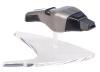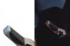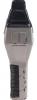 This resin cast phaser was painted to appear metallic by Paul Pearson's Prop'er Effects studio for TNG. It features a grooved grip and a static button array on its top. Included is an acrylic display stand with a Starfleet insignia shaped base. The phaser exhibits paint flaking throughout and chipping to its buttons from production use and age. Dimensions: 8" x 2.25" x 1.75" ( 20.5 cm x 5.75 cm x 4.5 cm ).