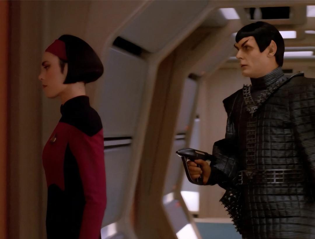 A Romulan disruptor pistol from Gene Roddenberry's Star Trek: The Next Generation. Romulan officers wielded their standard issue disruptor pistols throughout the series, including in such classic episodes as "Unification," "The Next Phase," and "Face of the Enemy."