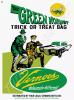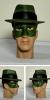 atop a smoking create and a Green Hornet dart in hand, Kato stands over a knife stuck in the crate, holding a note that says