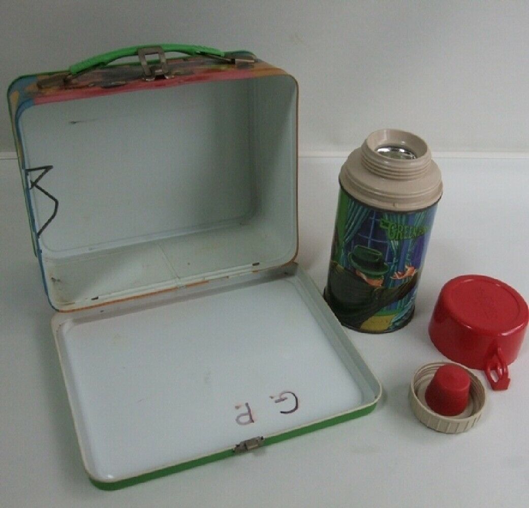 Vintage 1967 The Green Hornet lunch box and thermos. Authentic lunch box depicts the Green Hornet and Kato fighting villains. |